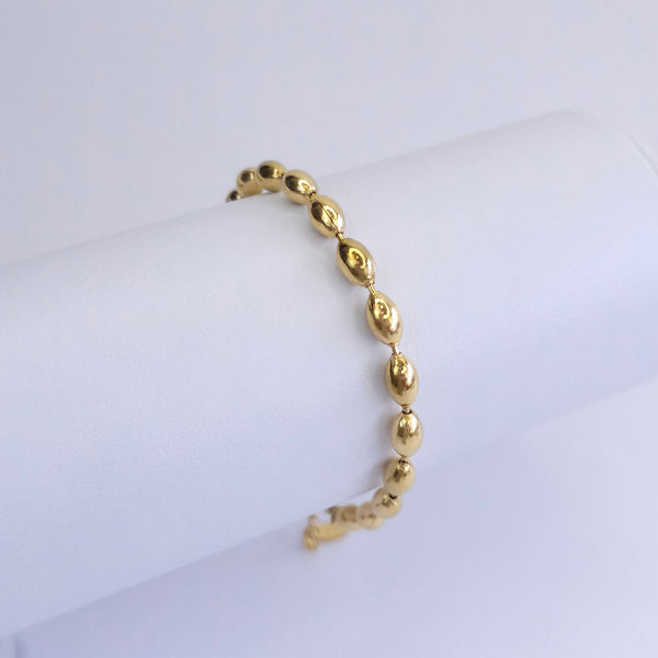Pulsera de cuentas doradas con cruz de zirconias y dije Nuestra Señora