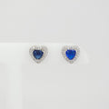 Aretes Plateados Corazón Brillantes Azul